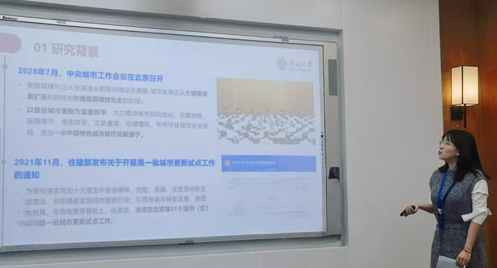 博士生陈燕在青年论坛以《城市更新试点政策量化评价研究》为题进行汇报。她借助“政策主题-实施主体-政策内容”三维分析框架,量化评价城市更新试点城市的政策文本。研究发现城市更新试点政策主题明确,政策实施主体关系复杂,不同地区和城市间政策内容一致性水平差异明显。研究进一步指出应顺应城市发展规律,系统规划城市更新政策主题布局与主体协同机制,在政策协同中促进城市更新高质量发展。