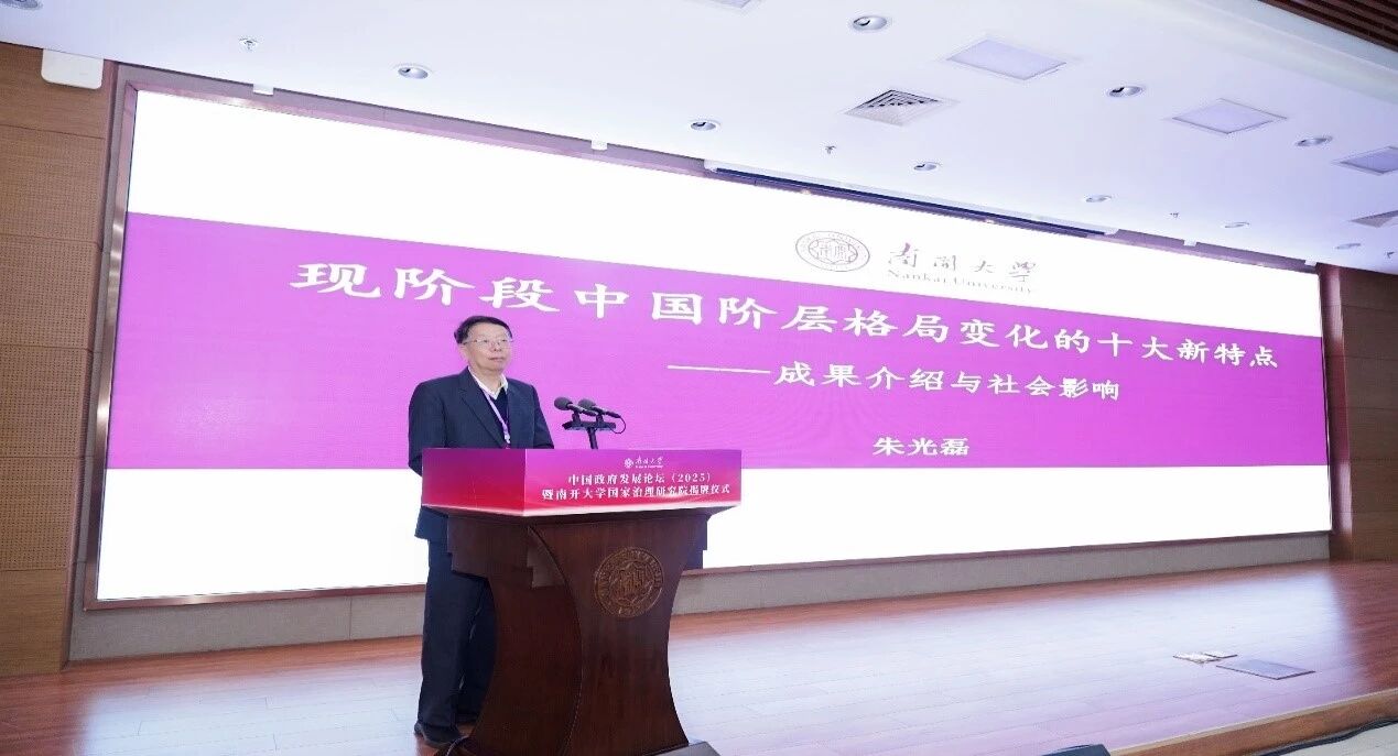 在南开自主知识体系成果发布环节,南开大学讲席教授、原副校长朱光磊教授发布了题为《现阶段中国阶层格局变化的十大新特点》的研究成果。