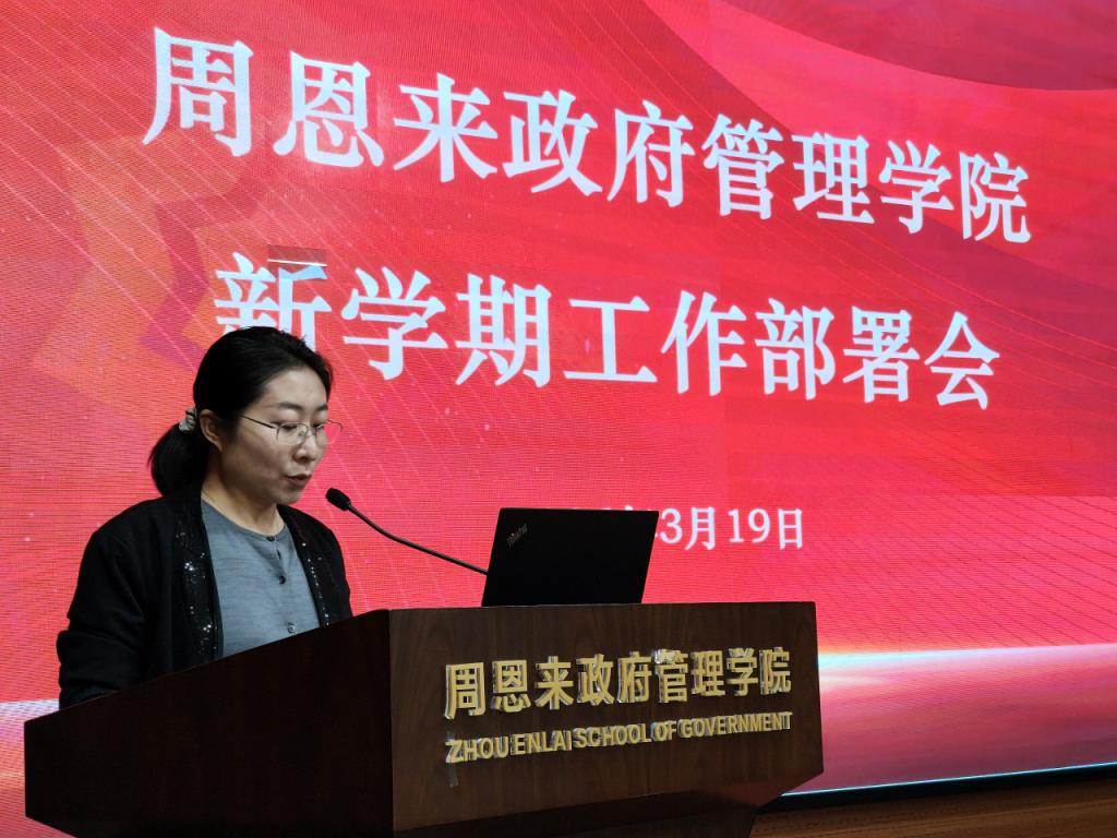 崔宇副书记汇报学生工作情况,回顾上学期学生在党建、学风建设、社会实践等领域取得的荣誉成果。针对新学期,她重点介绍了就业工作、心理及安全稳定工作、毕业离校工作、创新能力培养等计划目标,期待加强与导师的协同联动,共同引导学生健康成长发展。