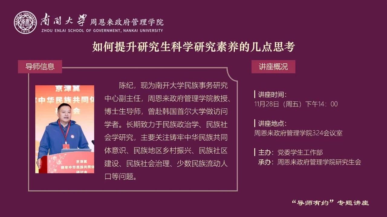 导师有约丨陈纪:如何提升研究生科学研究素养的几点思考